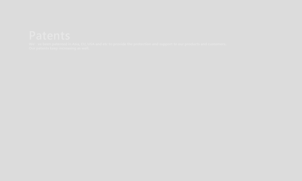 We’ve been patented in Asia, EU, USA and etc to provide the protection and support to our products and customers. Our patents keep increasing as well.